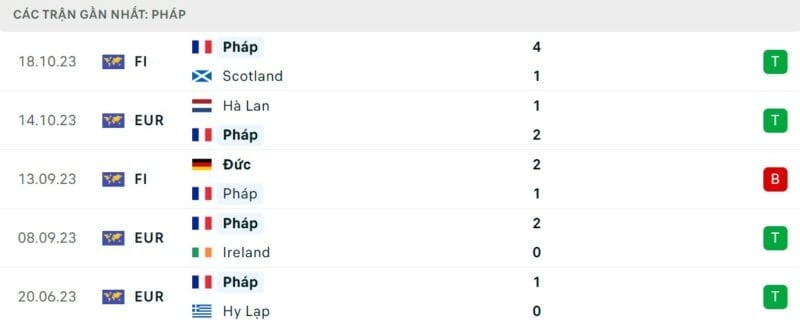 Pháp đang duy trì một phong độ hết sức thuyết phục và ấn tượng. Họ chưa thua trận đấu chính thức nào kể từ khi gục ngã tại chung kết World Cup 2022. Thất bại duy nhất mà thầy trò HLV Didier Deschamps phải nhận trong giai đoạn này là ở trận giao hữu trước ĐT Đức.