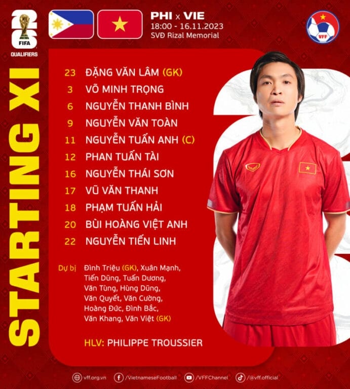 Đội hình xuất phát Philippines vs Việt Nam