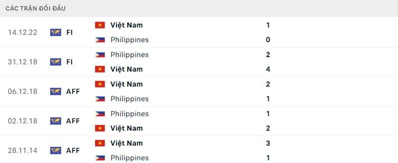 Phong độ Philippines vs Việt Nam