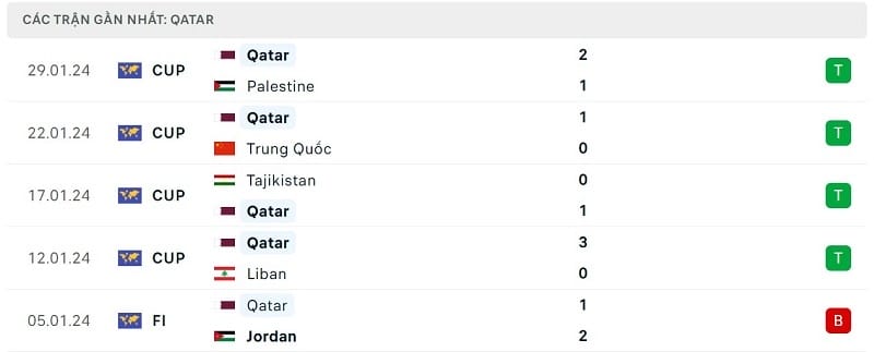 Tính đến thời điểm hiện tại, ĐT Qatar đang thể hiện được sức mạnh của nhà đương kim vô địch. Đoàn quân của HLV Tintin Marquez giành trọn vẹn 9 điểm ở vòng bảng trước các đối thủ gồm Lebanon, Tajikistan và Trung Quốc.