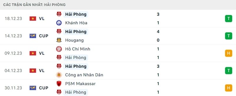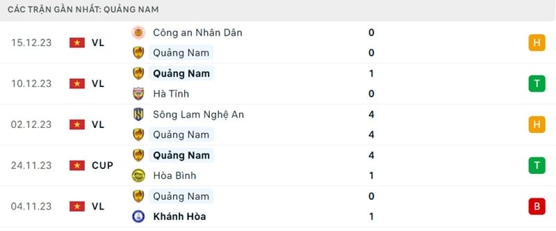 Thành tích đối đầu Quảng Nam vs Hải Phòng