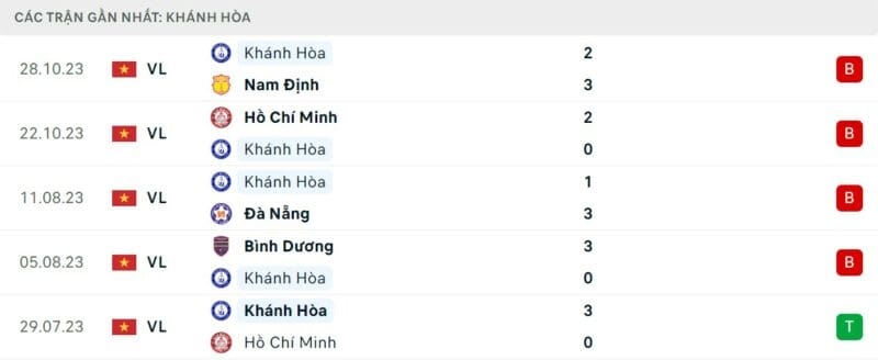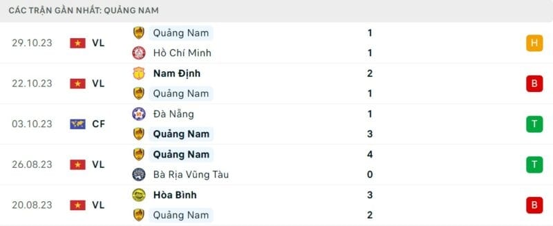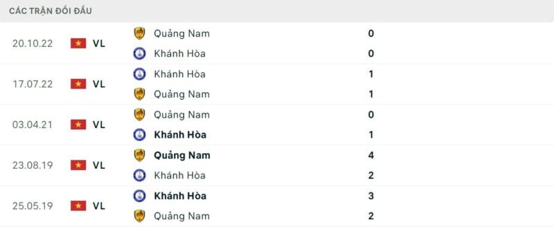 Thành tích đối đầu Quảng Nam vs Khánh Hòa
