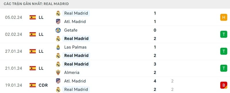 Phong độ của Real Madrid mùa này cực kỳ ấn tượng, với thành tích 18 trận thắng, 4 trận hòa và 1 thất bại sau 23 vòng. Họ tích góp 58 điểm để dẫn đầu La Liga 2023/24. Los Blancos đang hơn đội xếp thứ ba là Barcelona 8 điểm và hơn đội xếp thứ 4 là Atletico Madrid 10 điểm. Dù vậy, đối thủ chính của Real ở cuộc đua vô địch chính là Girona, CLB chỉ kém thầy trò HLV Carlo Ancelotti 2 điểm.