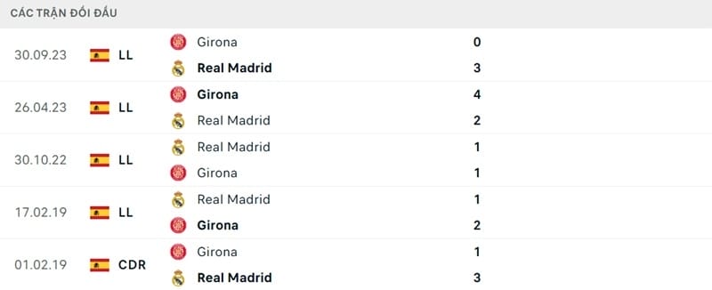 Như đã đề cập, Girona từng thua 0-3 trước Real ở đầu mùa giải này. Tuy nhiên, họ cũng khiến Los Blancos muối mặt bằng chiến thắng 4-2 trên sân nhà ở mùa giải trước và đã thiết lập chuỗi 3 trận bất bại trước Real cho đến lúc 2 đội gặp nhau vào tháng 9 năm ngoái.