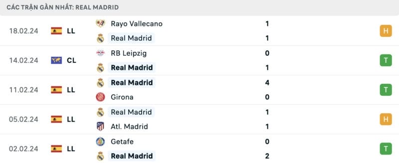 Phong độ Real Madrid vs Sevilla