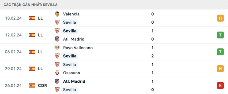 Tuy nhiên phong độ của Sevilla trong thời gian gần đây đã được cải thiện đáng kể. Đội bóng xứ Andalusia đang có chuỗi 4 trận bất bại tại La Liga. Kết quả này giúp Sevilla thoát khỏi khu vực xuống hạng và leo lên vị trí thứ 15.