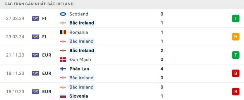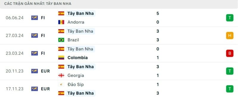 Phong độ gần đây Tây Ban Nha vs Bắc Ireland