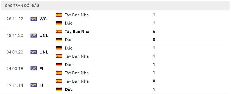 Thành tích đối đầu Tây Ban Nha vs Đức
