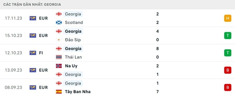 Phong độ Tây Ban Nha vs Georgia