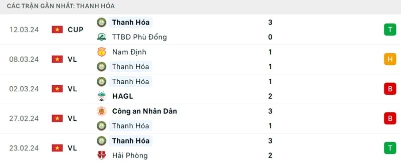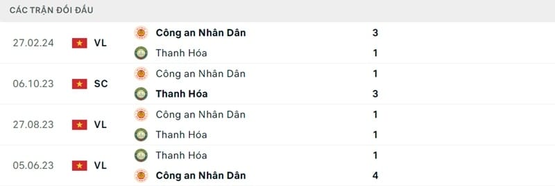 Thành tích đối đầu Thanh Hóa vs CAHN