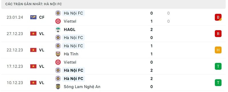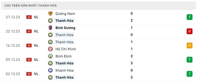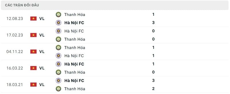 Thành tích đối đầu Thanh Hóa vs Hà Nội: