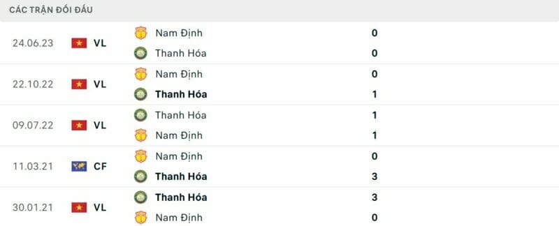 • Thành tích đối đầu Thanh Hóa vs Nam Định: