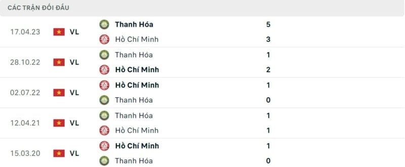 Thành tích đối đầu Thanh Hóa vs TPHCM:
