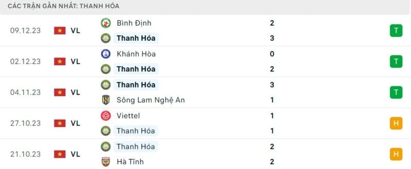 Phong độ gần đây Thanh Hóa vs TPHCM: