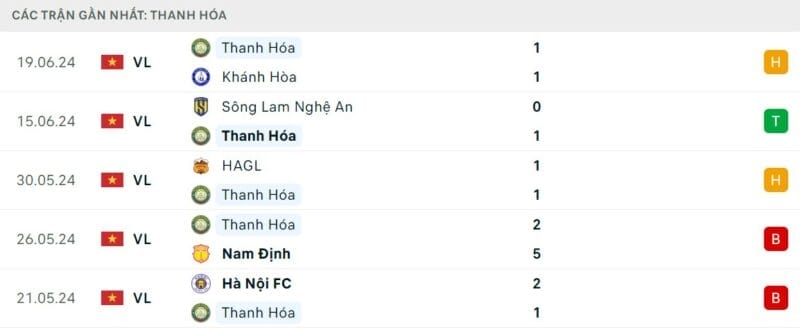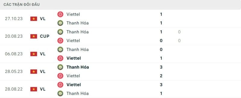 Thành tích đối đầu Thanh Hóa vs Viettel