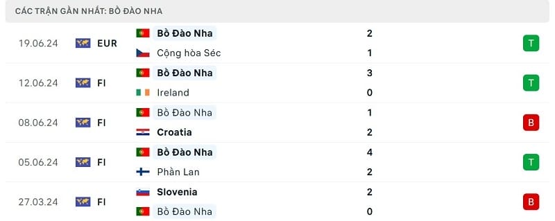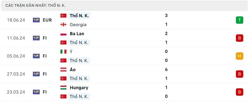 Phong độ gần đây Thổ Nhĩ Kỳ vs Bồ Đào Nha