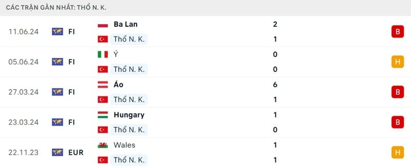 Phong độ gần đây Thổ Nhĩ Kỳ vs Georgia