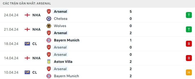 - Arsenal: Hojbjerg (phản lưới, 15'), Saka (27'), Havertz (38').