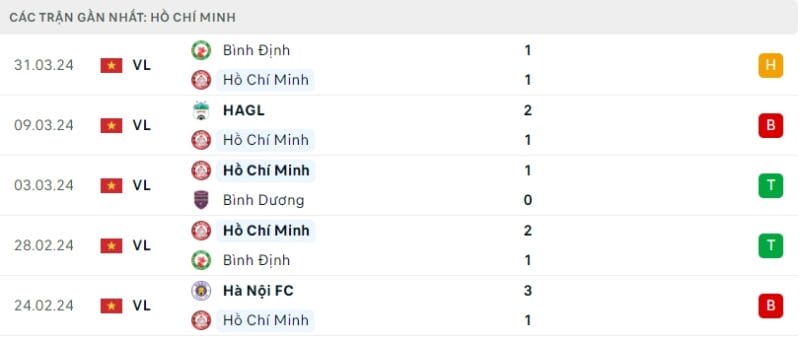 Câu lạc bộ TP.HCM đang đứng hạng 6 trên bảng xếp hạng V-League 2023/24, với 19 điểm. Đội bóng thành phố mang tên Bác đã giành được 5 chiến thắng, 4 trận hòa cùng 5 thất bại. Họ đã nổ súng 15 lần, nhưng cũng phải chịu tới 15 bàn thua.
