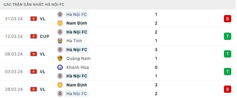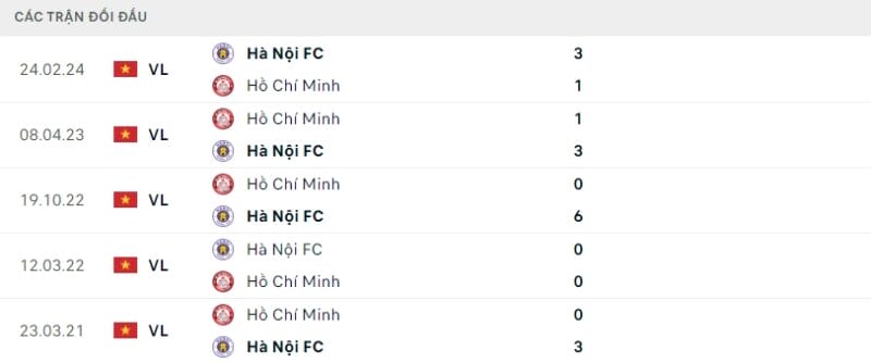 Thành tích đối đầu TP.HCM vs Hà Nội