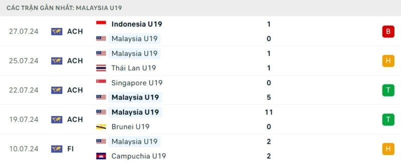 Thành tích đối đầu U19 Úc vs U19 Malaysia