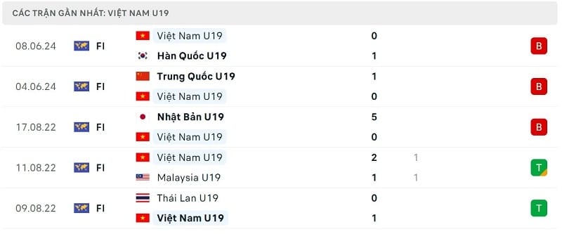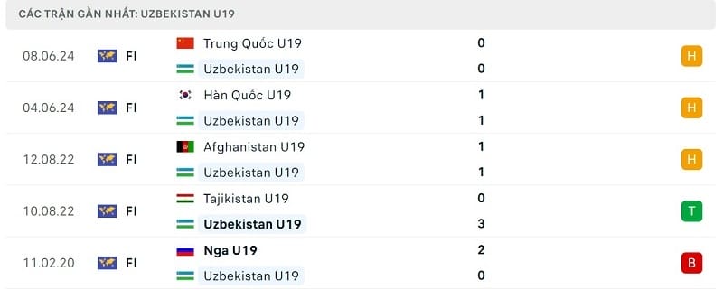 Phong độ gần đây U19 Uzbekistan vs U19 Việt Nam