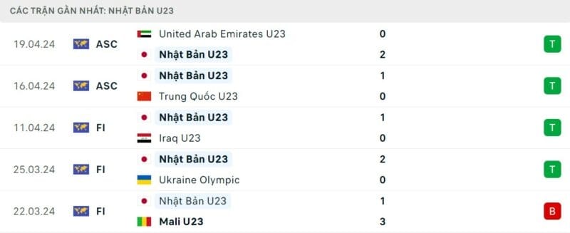 Phong độ U23 Nhật Bản vs U23 Hàn Quốc