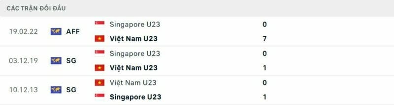 Thành tích đối đầu U23 Việt Nam vs U23 Singapore: