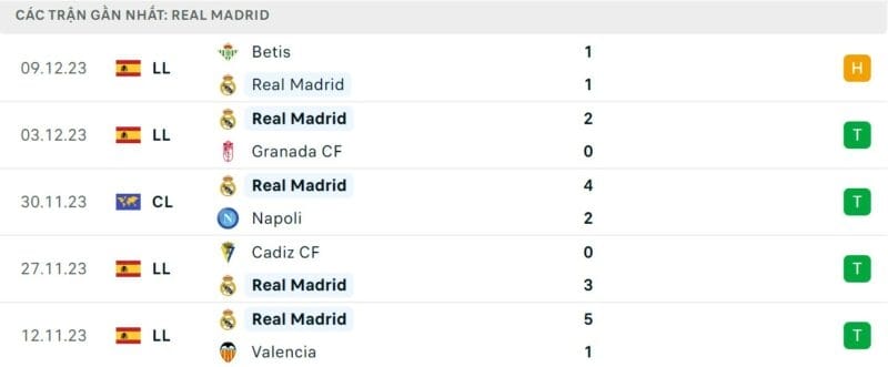 Phong độ gần đây Union Berlin vs Real Madrid: