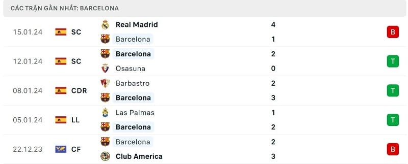 Phía bên kia chiến tuyến, Barcelona có phong độ thiếu ổn định và HLV Xavi đang phải chịu sức ép rất lớn. Tính đến trước trận chung kết Siêu cúp Tây Ban Nha, Blaugrana có 3 chiến thắng liên tiếp. Thế nhưng đó đều là các trận đấu vất vả với Barcelona dù họ gặp những đối thủ yếu gồm Las Palmas, Union Deportiva Barbastro và Osasuna.