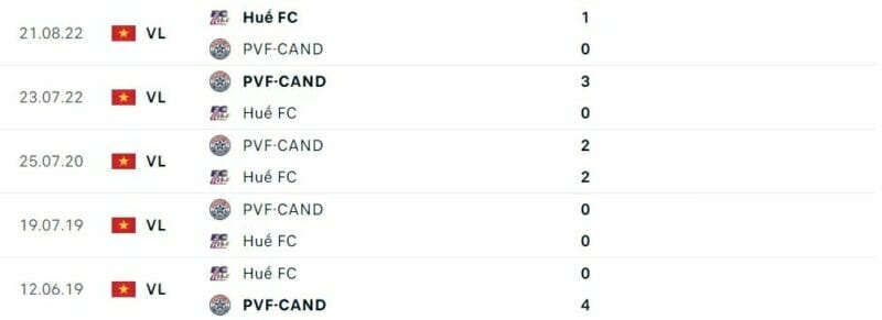 • Thành tích đối đầu Huế vs PVF-CAND