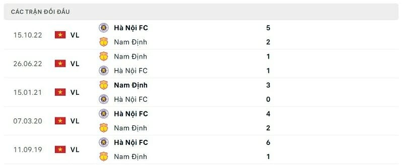Thành tích đối đầu Hà Nội vs Nam Định: