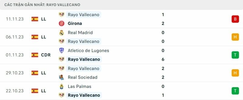 Rayo Vallecano đã phải chứng kiến chuỗi trận bất bại dài nhất của họ (2 thăng, 6 hòa) kết thúc với trận thua 1-2 trước đội đầu bảng Girona ở vòng 13. Tuy nhiên, đây vẫn là mùa giải mà họ thua ít trận nhất (3) sau 13 vòng ở La Liga. Điều đó làm tăng kỳ vọng rằng đội bóng thành Madrid có thể kéo dài thời gian chinh chiến ở đấu trường số một xứ đấu bò của họ lên mùa thứ tư liên tiếp.