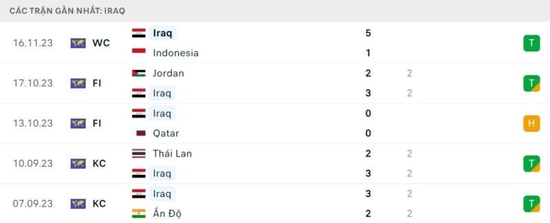 ĐT Iraq cũng có khởi đầu như mơ tại vòng loại thứ hai. Họ thị uy sức mạnh của mình bằng màn hủy diệt đối thủ Indonesia với tỉ số đậm 5-1. Đây giống như một lời thách thức của đội tuyển mạnh nhất bảng gửi tới Việt Nam và các đối thủ còn lại.