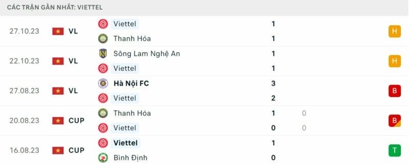 Thành tích đối đầu Viettel vs Hà Tĩnh