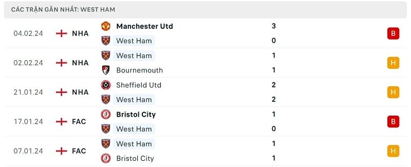 Phong độ thời gian gần đây của The Hammers vô cùng kém cỏi. Từ khi bước sang năm mới 2024, West Ham chưa có được chiến thắng nào. Tính trên mọi đấu trường, thầy trò HLV David Moyes hiện có chuỗi 6 trận chưa biết đến mùi chiến thắng.