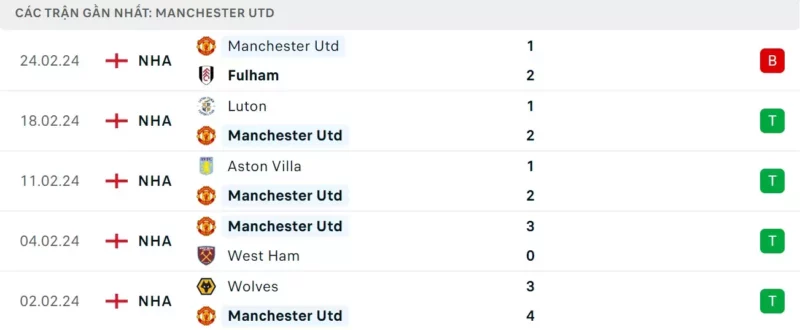 Phong độ gần đây Nottingham Forest vs Man United: