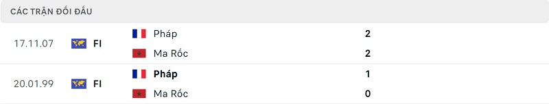 Thành tích đối đầu Pháp vs Ma Rốc