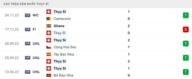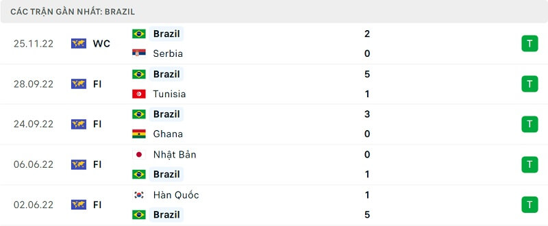 Phong độ gần đây Brazil vs Thụy Sĩ: