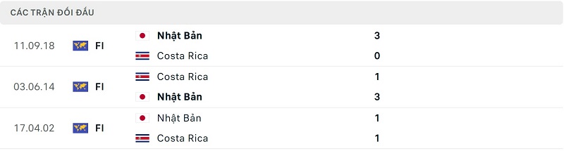 Thành tích đối đầu Nhật Bản vs Costa Rica: