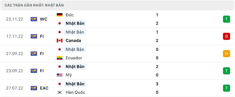 Phong độ gần đây Nhật Bản vs Costa Rica: