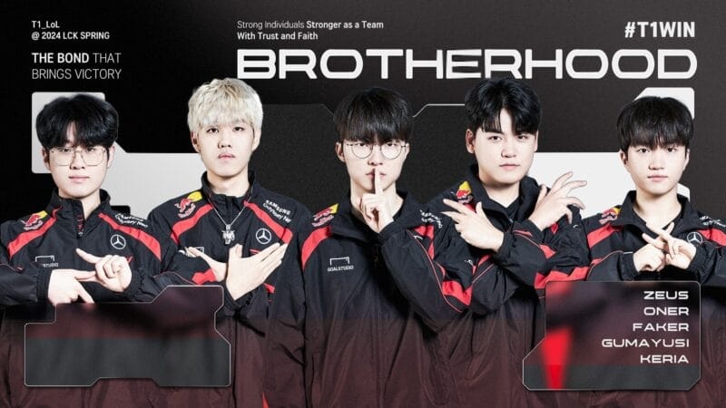 Đội hình: Zeus, Oner, Faker, Gumayusi, Keria